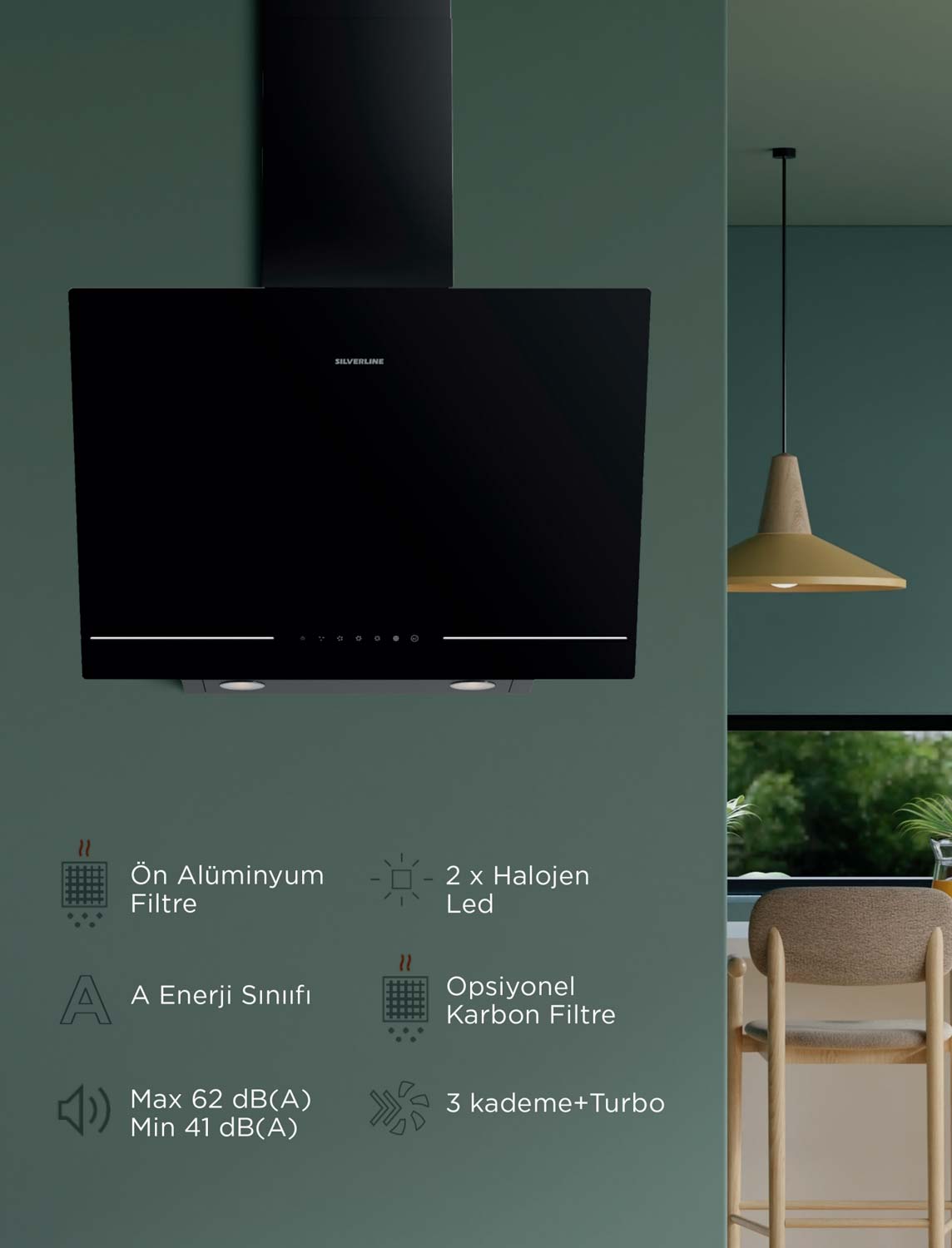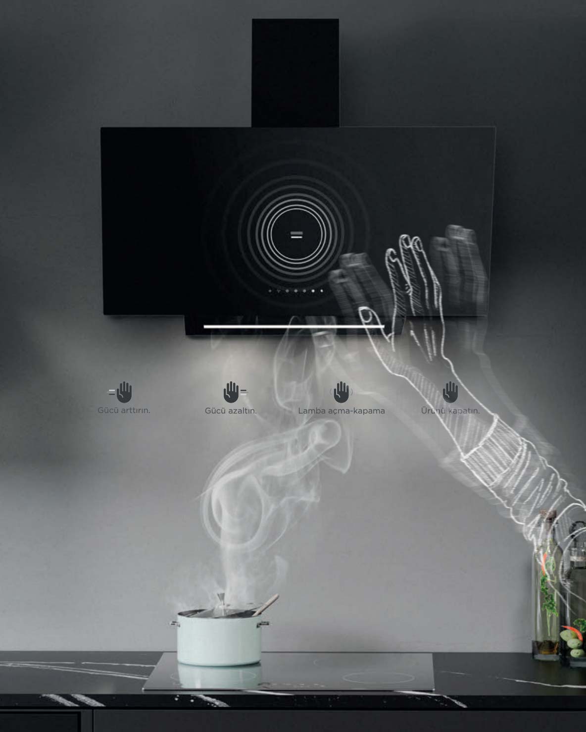 - Havalandırma (davlumbaz + davlumbaz entegreli ocak)