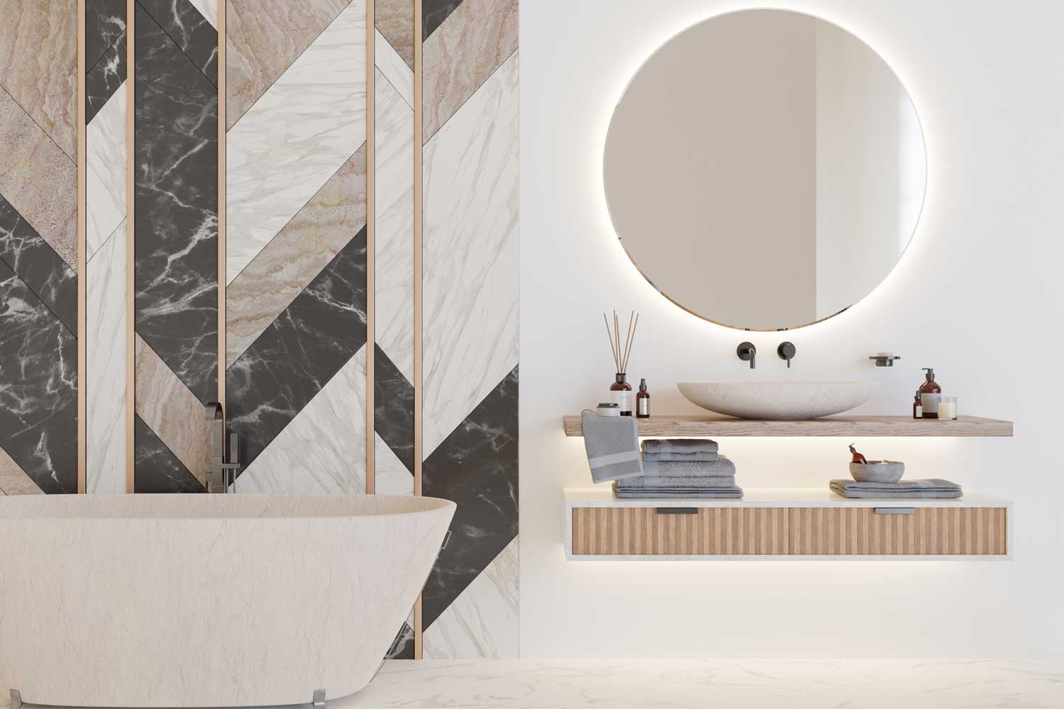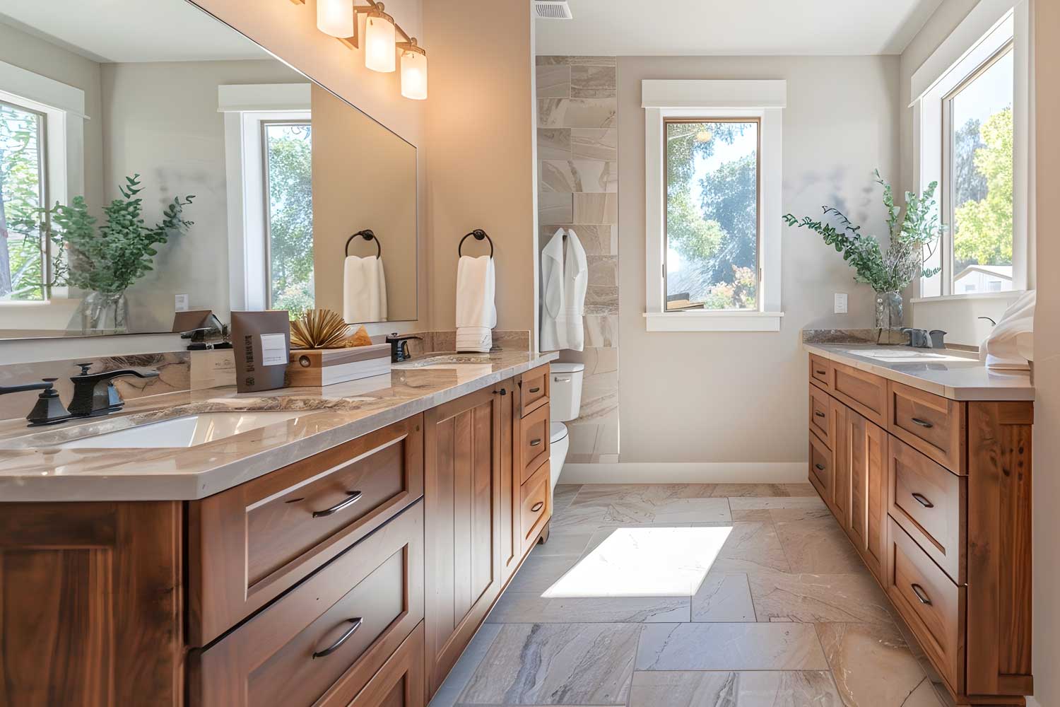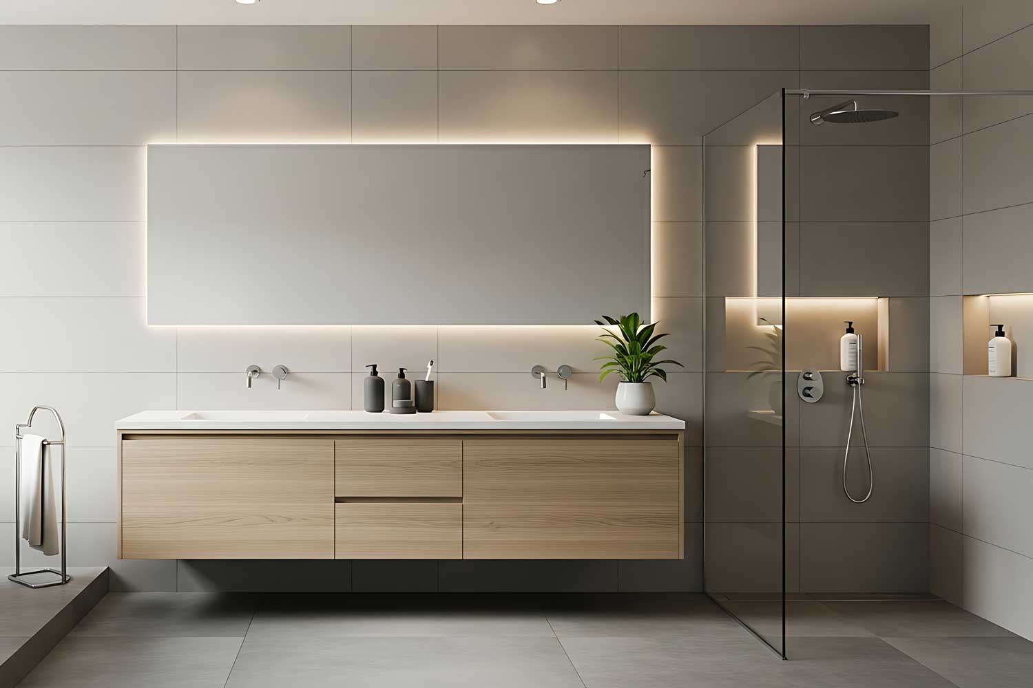 Banyo projelerinde alan ölçülerini ve tesisat noktalarını dikkate alarak fonksiyonel bir yerleşim planı oluşturuyoruz. Lavabo dolabı, boy dolabı, ayna ünitesi, çamaşır alanı ve depolama ihtiyaçlarını tek bir bütün olarak tasarlıyoruz. Neme dayanıklı gövde çözümleri, kaliteli kapak yüzeyleri ve uzun ömürlü aksesuarlarla banyonuzu yıllarca sorunsuz kullanmanızı hedefliyoruz. 3D görselleştirme ile renk–doku uyumunu ve ürün ölçülerini netleştiriyor, onay sonrası üretime geçiyoruz. Montajda suya temas eden bölgelerde detay çözümlerine özel önem veriyor; düzgün birleşim, temiz silikon uygulaması ve kusursuz hizalama ile işi tamamlıyoruz.